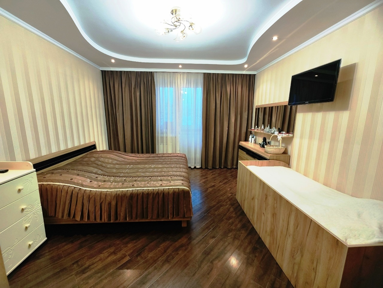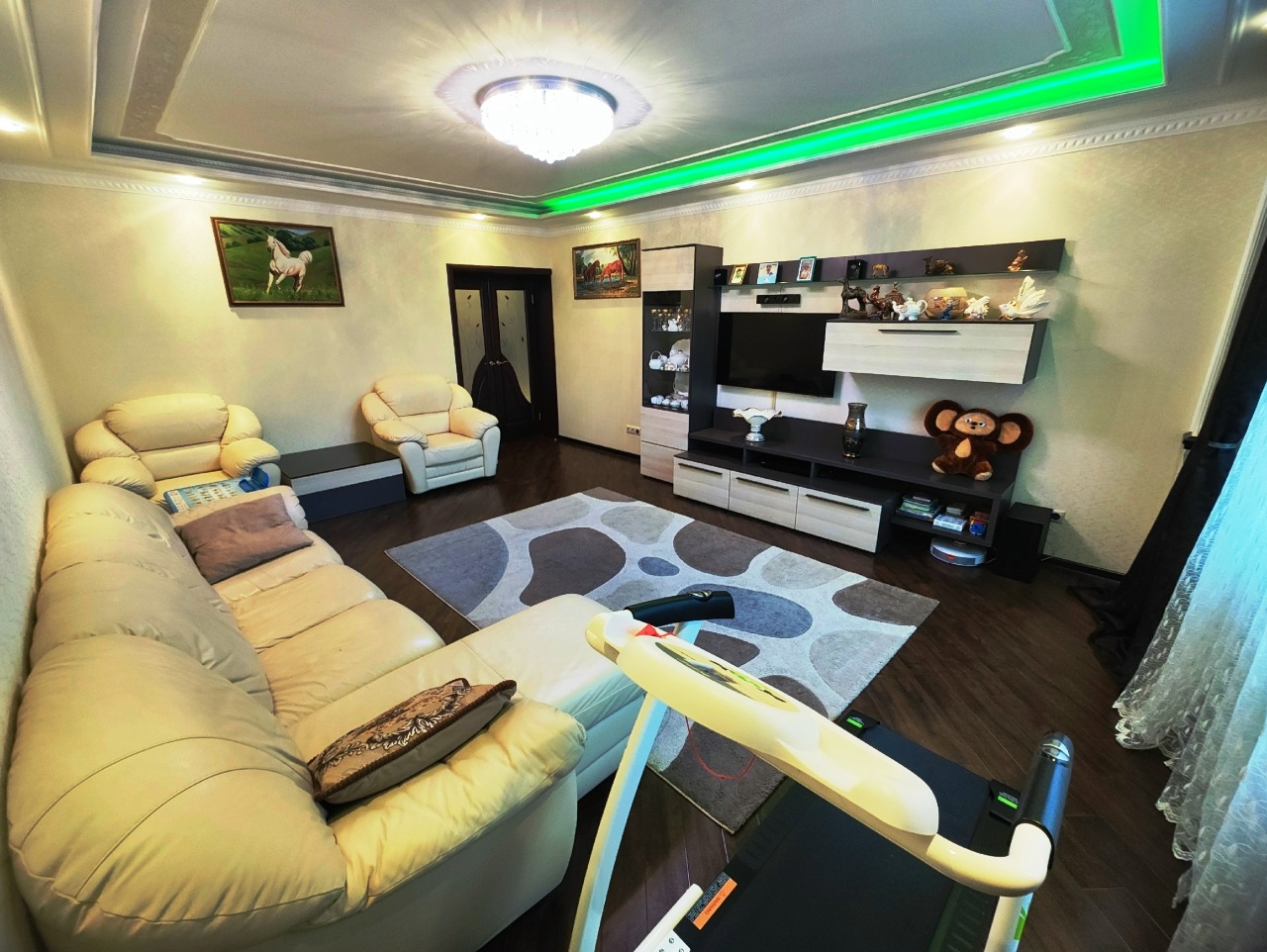 Продается 3 ком. квартира на ул. Дружбы, 4/5 кирпичного дома, площадь 112 кв.м., комнаты изолированные, кухня 30 кв.м., 2 сан. узла, лоджия 4,5 м, окна ПВХ, квартира продается с мебелью.