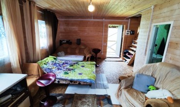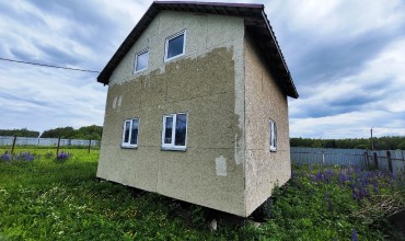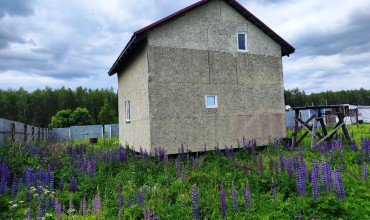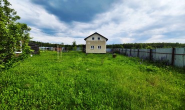 Каркасный 2-х эт. дом, площадь 90 кв.м., с/у в доме, скважина в дом заведена, земельный участок 10 сот. в железном заборе, на участке расположена бытовка с пристроенной комнатой и летний душ.