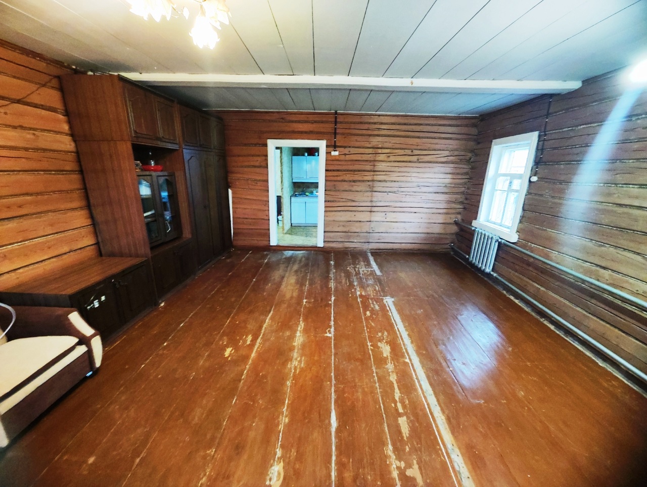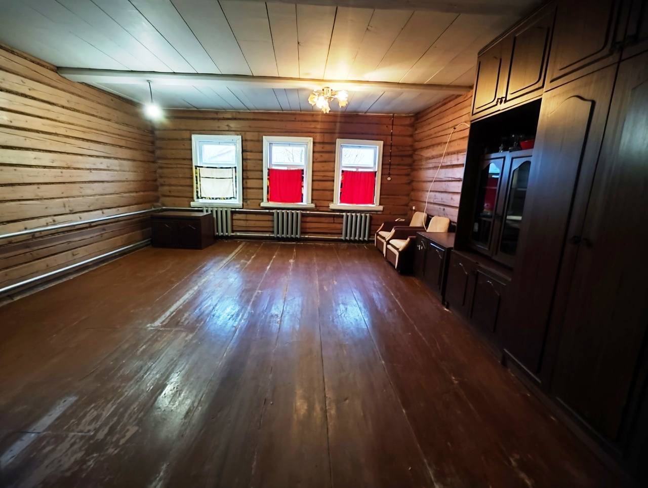Дом бревенчатый, 1 этаж, площадь 60 кв.м. (1 комната + кухня), с/у в доме. Отопление газовое, скважина заведена в дом.