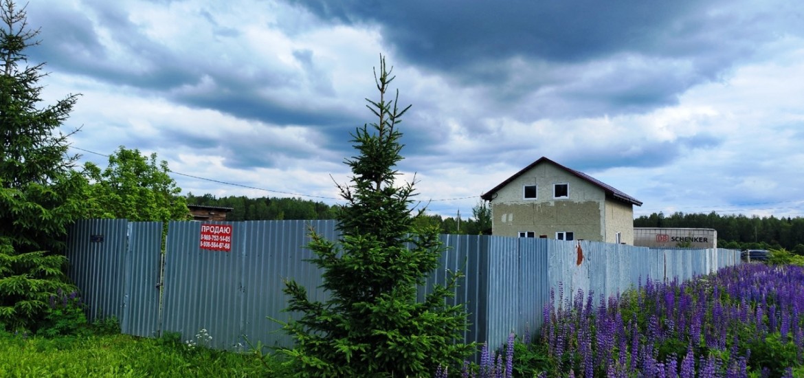 Каркасный 2-х эт. дом, площадь 90 кв.м., с/у в доме, скважина в дом заведена, земельный участок 10 сот. в железном заборе, на участке расположена бытовка с пристроенной комнатой и летний душ.