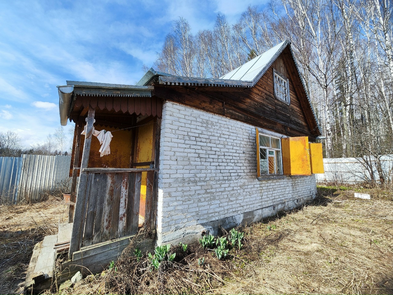 Кирпичный садовый дом, площадь 25 кв.м., земельный участок 8 сот. в железном заборе, на участке расположены хозяйственная постройка, теплица.